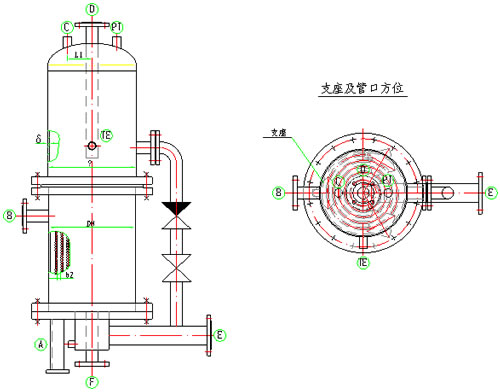A:排污口 B:一次介質進口 C:溫控閥口 D:二次介質出口 E:二次介質進口F:一次介質出口 PI:壓力表口 TE:溫度計口